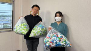 10月22日に当会の事務所の近くにある英光建設さんに行ってきました。 ボトルキャップを11.4kg集めていただきました。 ありがとうございます。 次はアルミ缶もよろしくとお伝えしました。